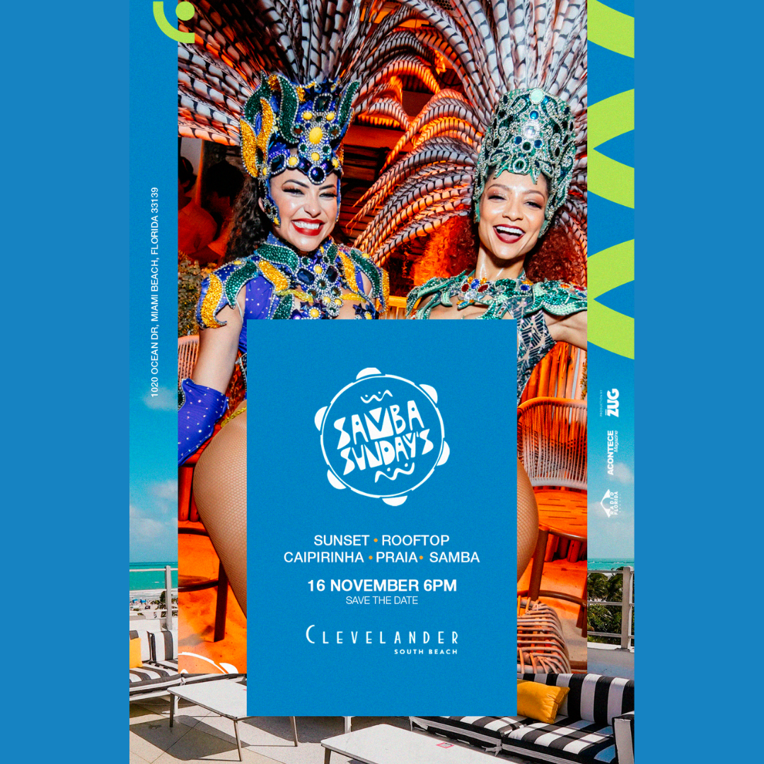 Feel the rhythm of Brazil right here in South Beach as the Clevelander Rooftop transforms into a sunset carnival. Sip on handcrafted caipirinhas, move to the sounds of live samba and batucada beats, and watch vibrant dancers bring the energy of Rio to Miami.